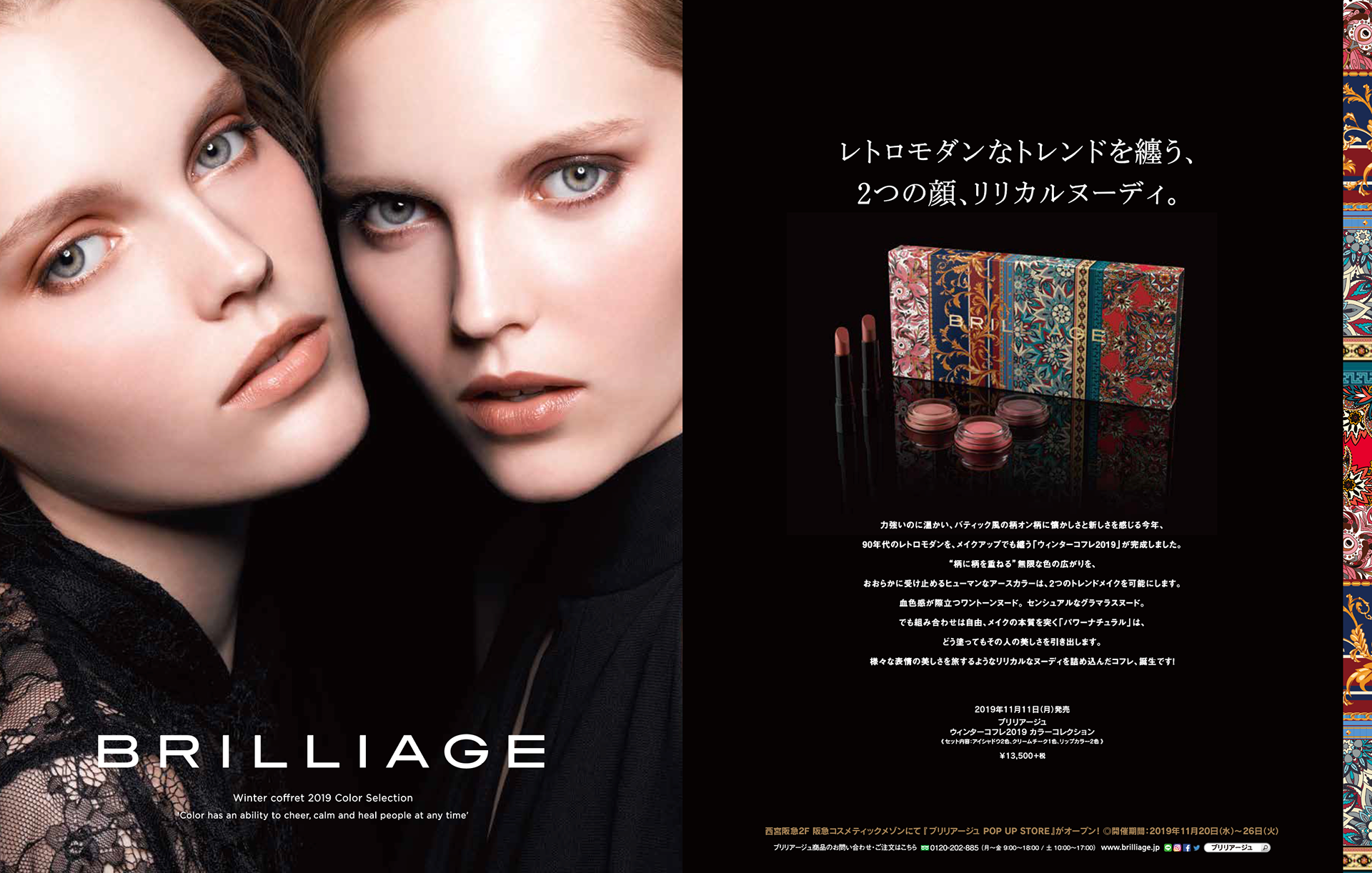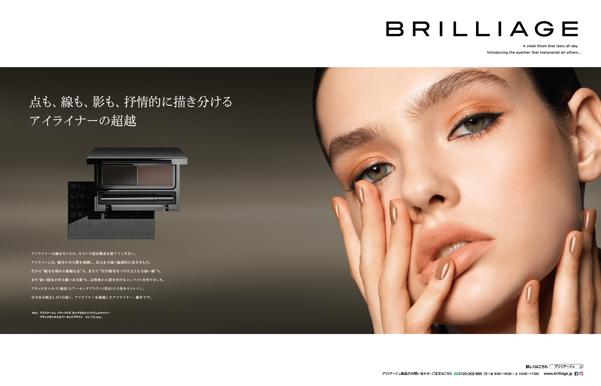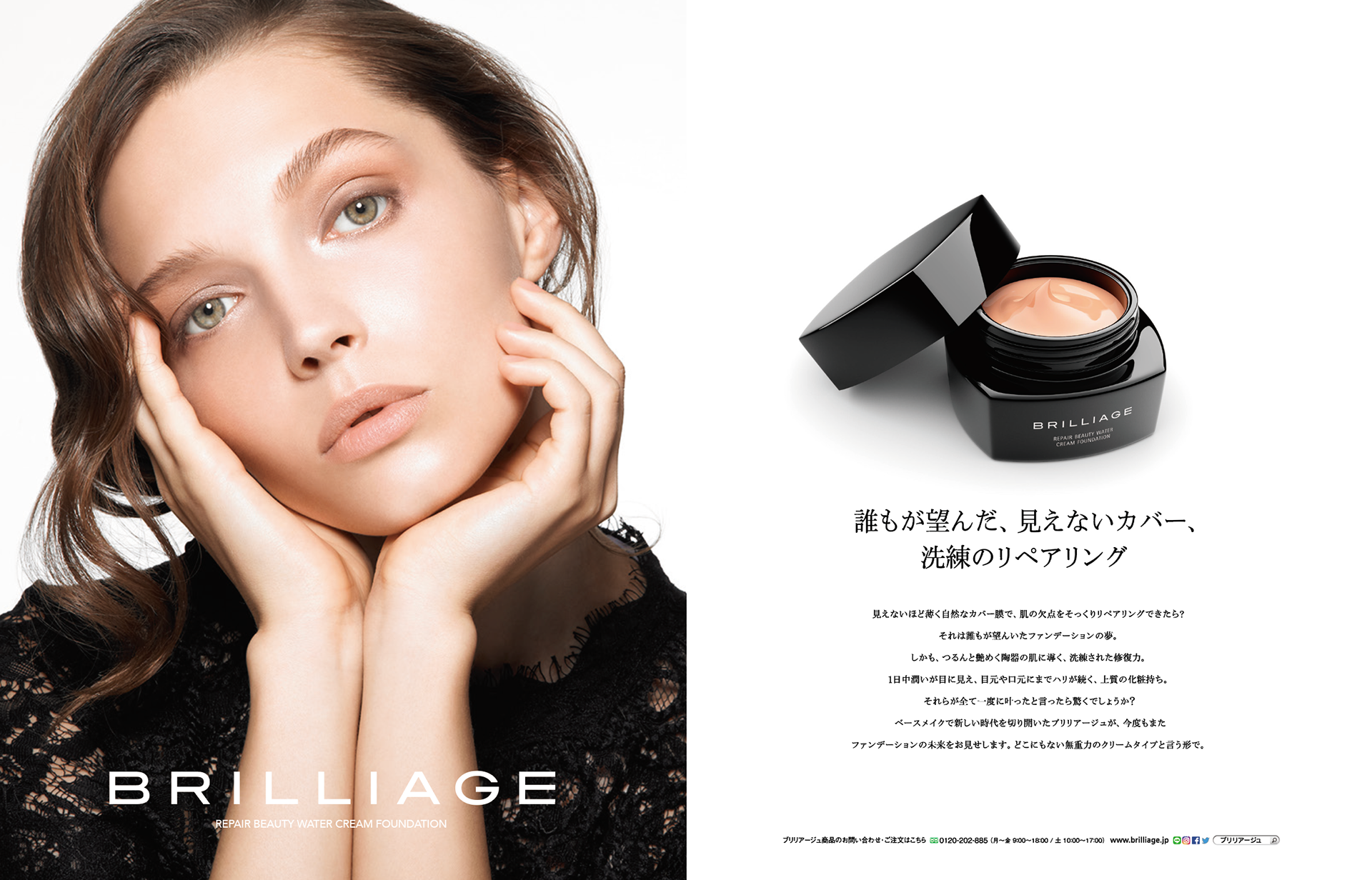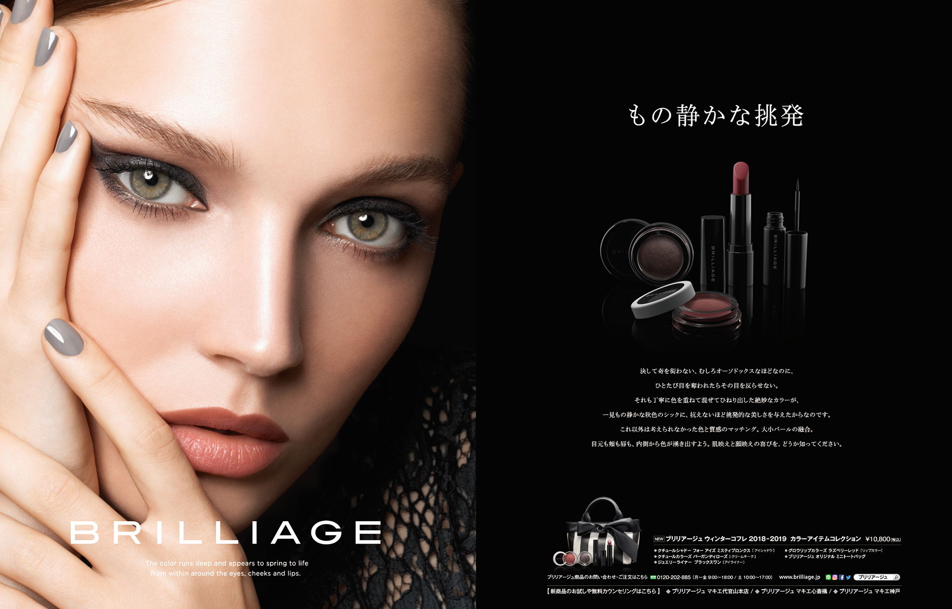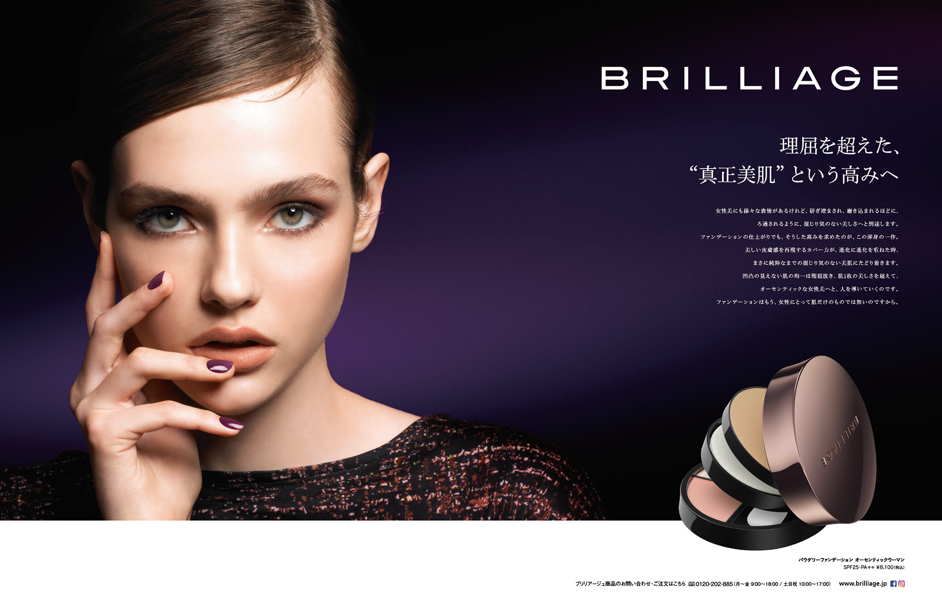 ヘア&メイクアップアーティスト嶋田ちあきさんが”女性の素肌美”を追求したメイクアップブランド BRILLIAGE(ブリリアージュ)の商品イメージを担当させていただきました。